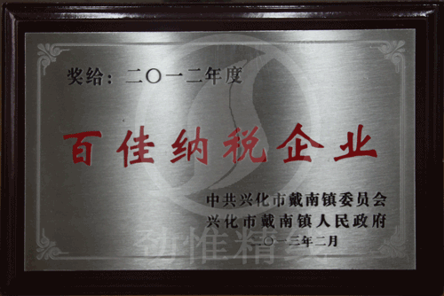 在2013年2月1日召开的戴南镇2012年度总结表彰大会上上我司喜获兴化市“百佳纳税企业”称